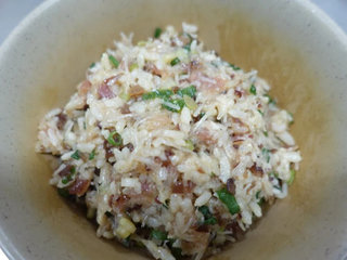 1、将冬粉切小段.黑木耳切末.葱切末.白饭.蛋.猪绞肉等以上食材,跟调味料混合,备用