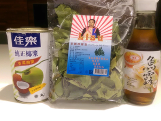 2 、调味料椰奶4大匙+鲜奶4大匙+糖1大匙+鱼露1茶匙全部调合好备用。