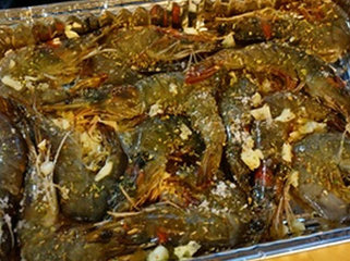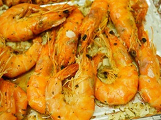 5 、烤箱以200度预热约6~7分,放入虾子烤,一面烤约5~6分钟,再夹出翻面烤之后就完成。