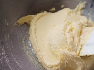 3 、无盐奶油在室温中软化后和砂糖一起放入钢盆中用电动搅拌器打至滑顺。