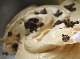 7 、步骤2滤出的茶叶切碎加约1大匙进入蛋糕糊中拌匀。