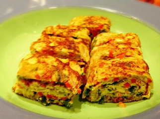 韩式四色蛋卷,蛋卷做法很多,韩式蛋卷加入切碎的蔬菜,上桌呈现出视觉味觉的飨宴!小朋友不喜欢吃的蔬菜也可以加入增加营养价值哦!