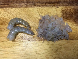 2 、将虾子剥壳后去肠泥, 再用刀子剁碎备用。