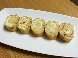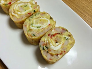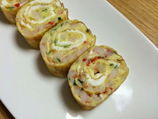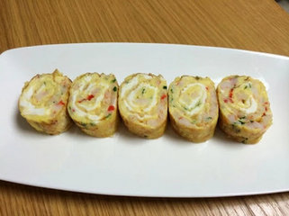 鲜虾起司蛋卷,前几天做了午餐肉蛋卷后,昨晚马上又试做了新口味,真不愧是国民小菜,不管加入什么样的配料都是那么的美味,除了可以带便当之外,加入起司的蛋卷也是很受欢迎的下酒菜喔。