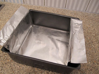 11 、隔日,用尖刀,顺着烤模周边划一刀。拉住两侧的铝箔纸,向上提,就可脱模了。脱模后,享用前,均匀撒上原味可可粉。