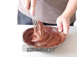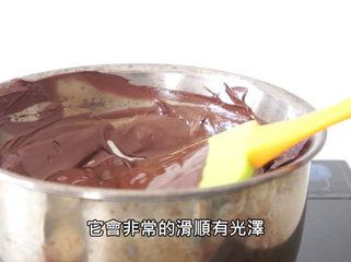 4 、巧克力糊加入室温的鲜奶油,拌匀。