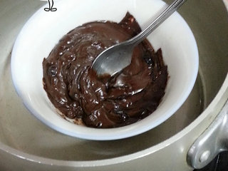 2 、黑巧克力切小块隔水溶化备用,我因为买到有甜味的黑巧克力,所以砂糖有减少,如果买到无糖黑巧克力,砂糖要增加20-30g,随各自喜好的甜度增加。