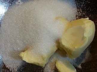 3 、将室温软化的奶油加砂糖打发,打至奶油泛白澎绵即可。