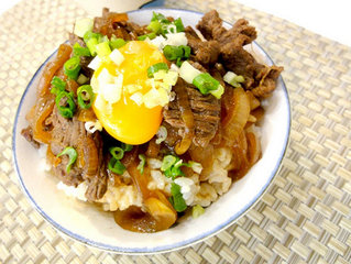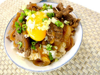 4 、将肉片酱汁淋在饭上,洒上葱花,再打一颗生蛋就完成了。(不敢吃生蛋可改糖心蛋)。