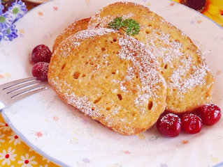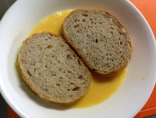 2 、将切薄片的面包或吐司放入单面各浸泡1分钟。