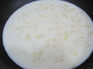 配料:鸡高汤100cc,牛奶120cc,糖及盐少许,黑胡椒少