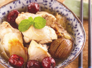 主料:鸡肉3两,田七3钱,红枣5粒,红参2钱
