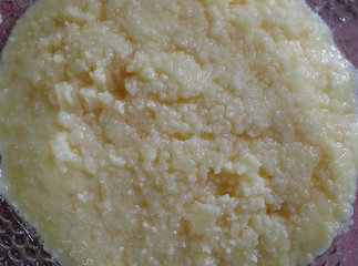 3 、趁中种发酵时间,将奶酥食材放入碗中,用汤匙拌均匀,整碗放入冰箱冷藏备用,也可装入塑胶袋整成长条型冷藏。