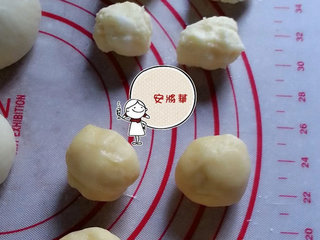 8 、趁面团休息时间,将菠萝皮分成30-32g一个,奶酥也分成20-25g一个备用。