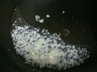 3 、锅里放食用油小火煸香蒜末, 有闻到香味就可熄火, 趁热马上倒进第二步骤拌匀, 最后加柠檬汁即完成沙拉酱料部分。