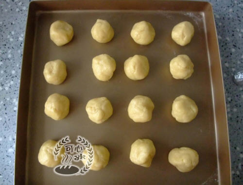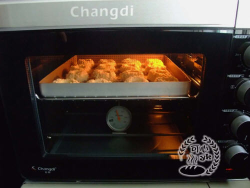 9、烤箱预热到160度,将烤盘送入,中层,上下火,20分钟左右。(时间和温度仅供参考。)