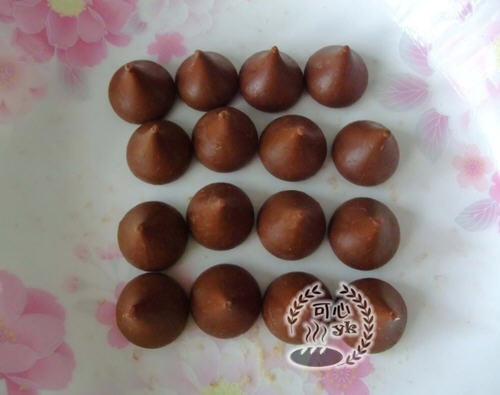 8、取一个巧克力,在每一个球的中间向下按个坑。全部做好。