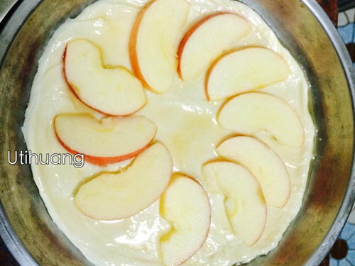 1、面团材料拌匀,水慢慢下,试情况可整成面团即可、接着用切苹果的时间醒面备用、容器或烤盘上点油。