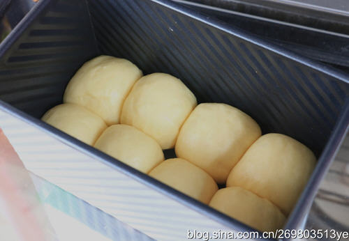 材料:高粉250克、鸡蛋50克、蛋黄1个、黄油60克、牛奶50克、糖40克、盐3克、酵母3克
