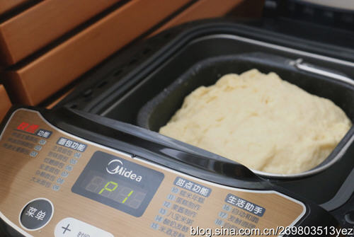 配料:黄油60克、牛奶50克、糖40克、盐3克、酵母3克