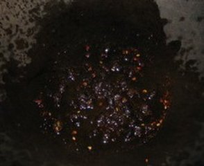 4、将煸香的豆豉浇烧在苦瓜上,再放入捣好的蒜泥,搅拌均匀即可。