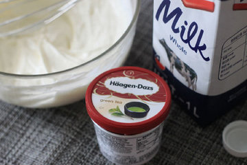 主料:抹茶冰激凌,纯牛奶,加糖打发的淡奶油