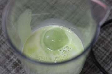 1、一大勺冰激凌和牛奶,放入容器,用搅拌棒搅拌。