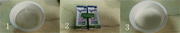3、牛奶倒入容器,加入菌粉,搅拌均匀。静置5分钟再搅拌一次,菌粉与牛奶完全混合。