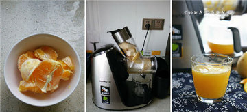 2、将香橙去皮备用,再分别将梨子及香橙入原汁机,榨出原汁即可享受。