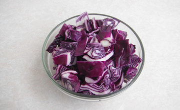 2、清洗干净的紫甘蓝切成大小适中的块状。