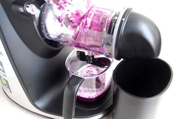 6、汁水清澈的流入接汁杯中,这样的色彩看着就很迷人。