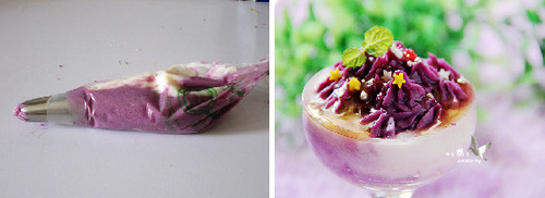 9、紫薯和山药泥全部打好。装入裱花袋中。