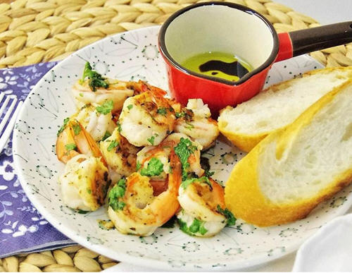 1、西班牙tapas是指下班后与好友一同佐酒享用的小点,香蒜虾是其中受欢迎的tapas,带着浓郁酱汁最适合搭配法国面包切片沾着吃,非常的美……