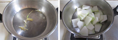 2、炒冬瓜时先将姜丝煸炒香味, 做海鲜菜时要到些姜丝, 避免海鲜的寒气;