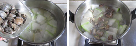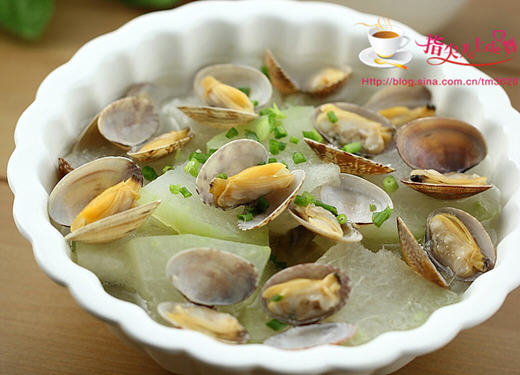 蛤蜊,性冷味咸,有滋阴润燥、利尿消肿的、软坚散结、滋润五脏等功效,它高蛋白、高微量元素、高铁、高钙、少脂肪,对于热衷于瘦身的朋友来说,绝对是解馋的不二之选啊。而冬瓜膳食纤维含量丰富,是所有瓜类蔬菜中惟一不含脂肪的,具有减肥美容的效果,同时还有护肾、清热化痰、防癌抗癌、润肤美容等多种功效,因此也是最适合夏季吃的蔬菜。