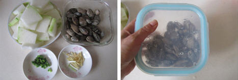 1、提前准备好所需要的原材料蛤蜊和冬瓜。