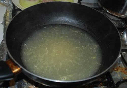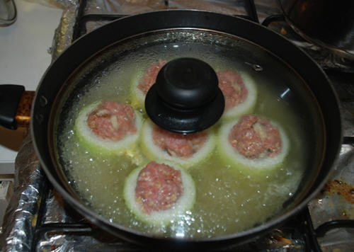 4、把上汤煮滚,然后放入瓜甫,以中火煮约8分钟。